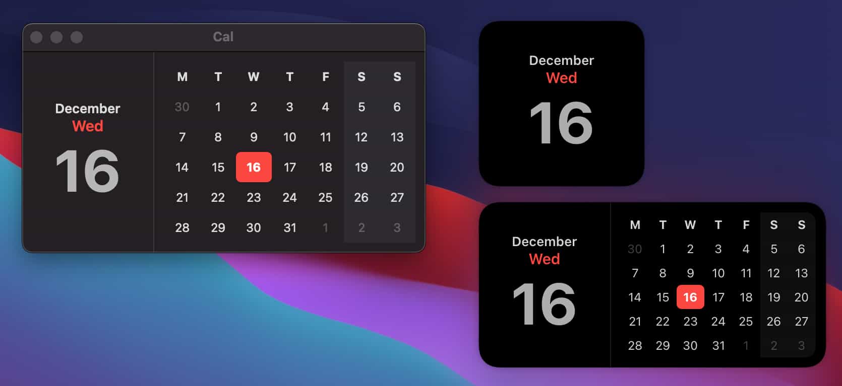 Cal is a simple app that displays the current date and month.