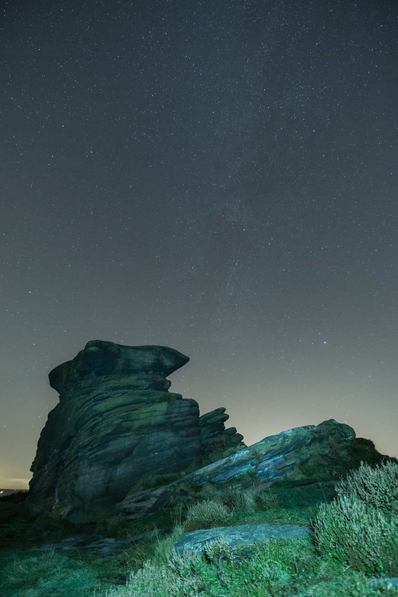 Visiting the rock formation couldn’t be easier; there’s a bi-hourly bus service from Sheffield and a paid car park near Surprise View. The car park is only paid for until 18:00, so it becomes free whe doing astrophotography or just star gazing. There are laminated signs saying that at weekends the car park is locked from 21:00, in my experience this has never happened.